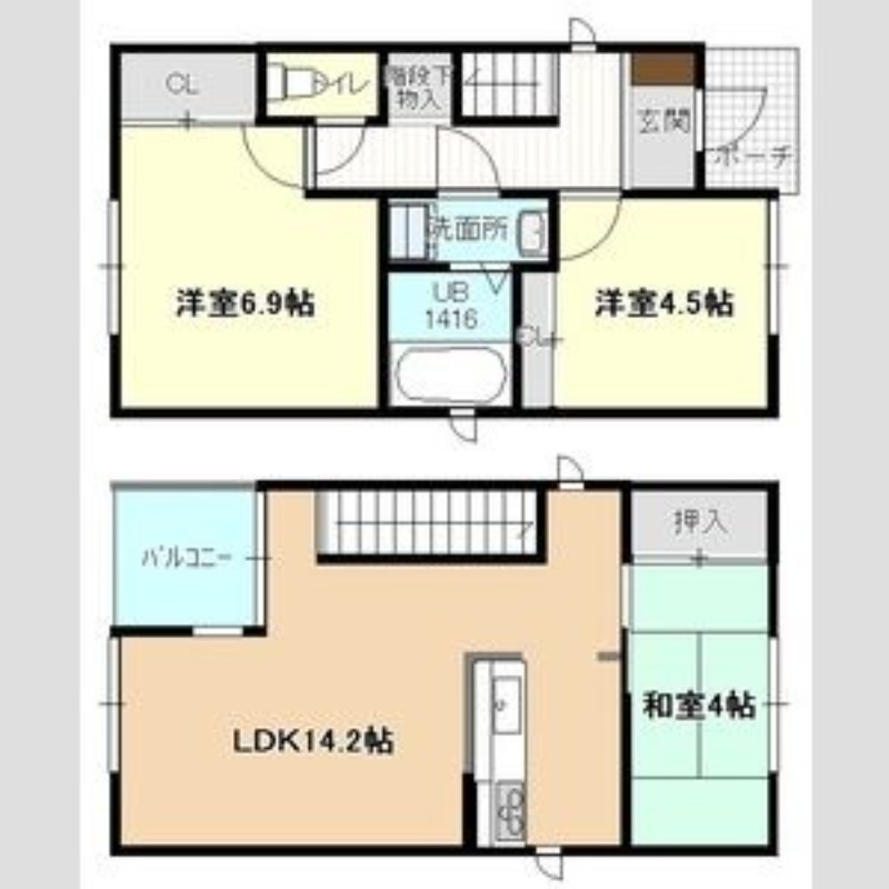 洋室 6.9畳 和室 4畳 LDK 14.2畳 |