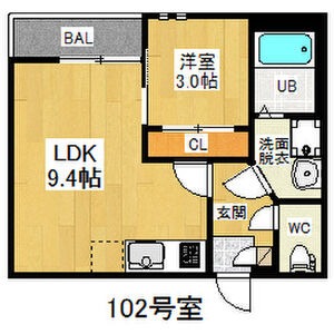 | 間取り詳細 | LDK 9.4畳 、 洋室 3畳 |