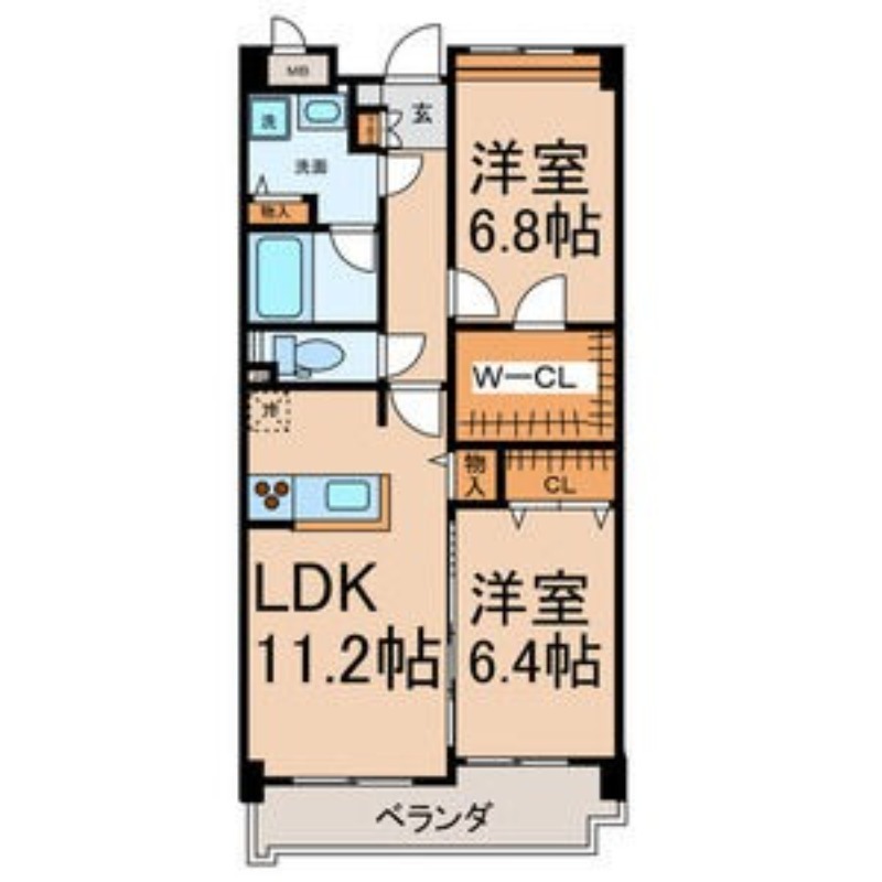 | 間取り詳細 | 洋室 6.4畳 、 洋室 6.8畳 、 LDK 11.2畳 |